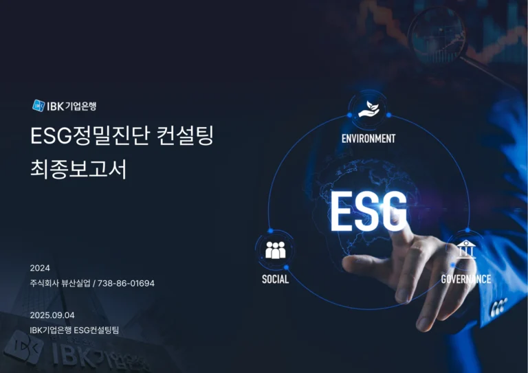 (주)뷰산실업은 투명하고 공정한 윤리경영을 바탕으로 사회적 책임을 다하며, 모든 이해관계자와 함께 성장하는 지속가능한 미래를 만들어가겠습니다. 저희는 환경 보호, 사회적 기여, 투명한 지배구조 확립을 통해 신뢰받는 기업으로 거듭날 것을 약속드립니다. 고객, 임직원, 협력사 그리고 지역사회의 목소리에 귀 기울이며 ESG 경영을 실천해 나가겠습니다.